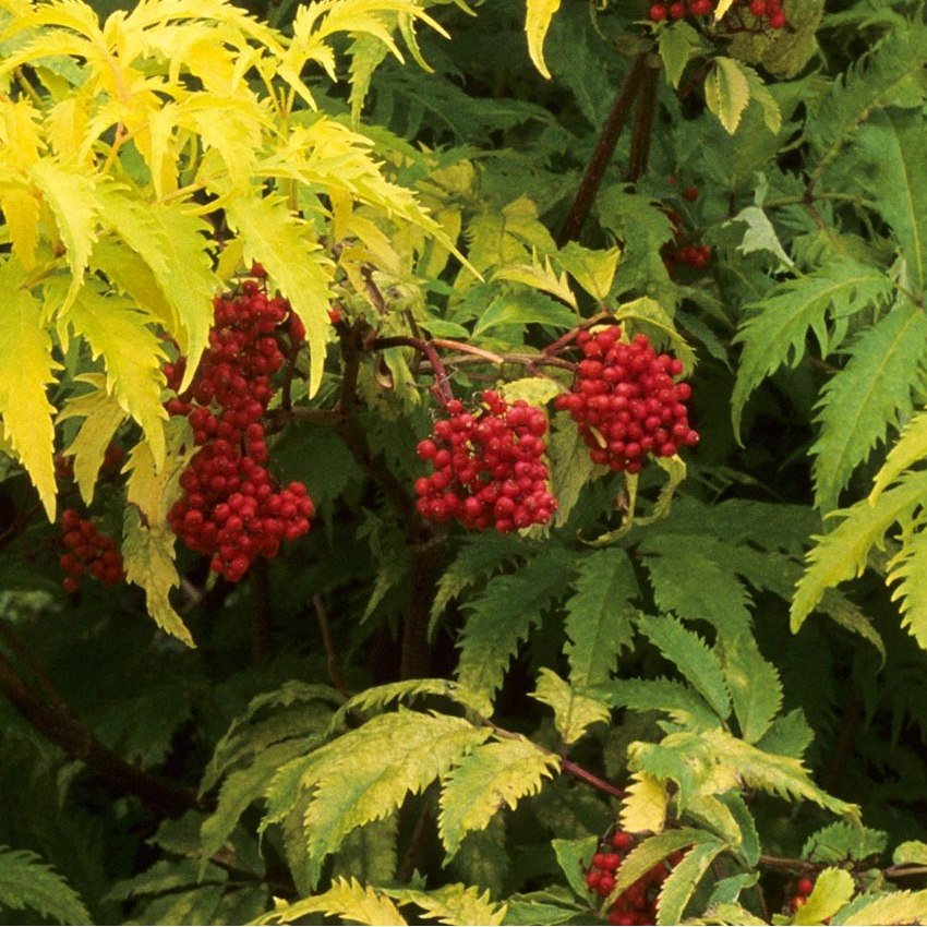 Саженец бузины красной 'Сазерленд Голд' – это великолепное декоративное растение, которое станет ярким акцентом в вашем саду. Этот сорт бузины отличается необычайно красивыми, ажурными листьями золотисто-желтого цвета, которые придают кустарнику изысканный и элегантный вид. Весной растение украшено мелкими кремово-белыми цветками, собранными в соцветия, а осенью на нем появляются ярко-красные ягоды, привлекающие птиц.
