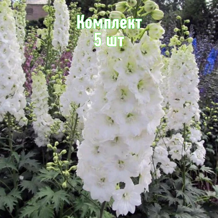 - Многолетние саженцы дельфиниума Pacific Giant, белого цвета.