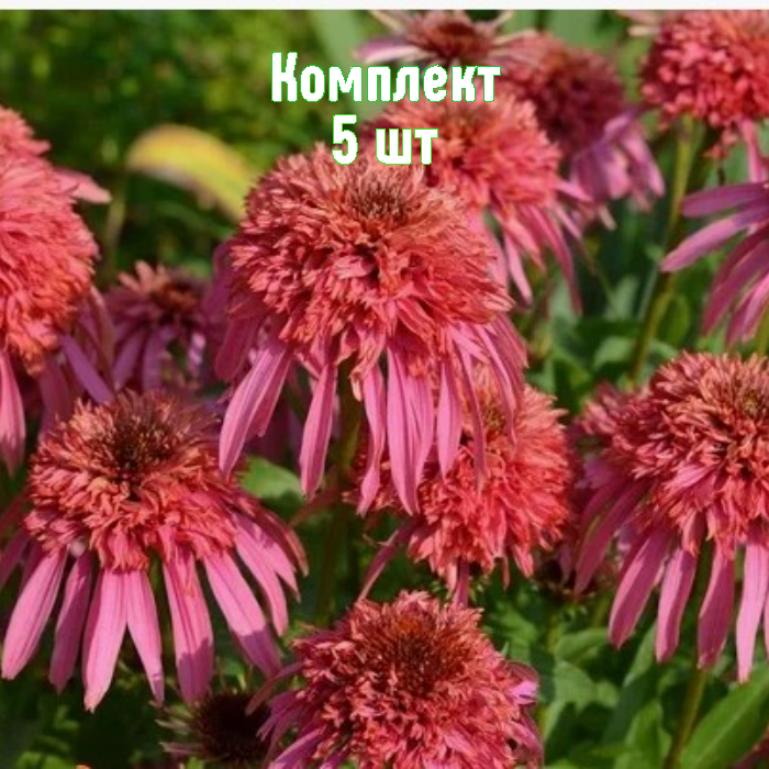 Саженцы эхинацеи Guava Ice — набор 5 шт. по цене 4. Высокорослая многолетняя эхинацея (50–75 см), с плотными прямыми стеблями и овально-зубчатыми листьями, иногда с пурпурным отливом у основания. Цветки крупные, махровые, до 12 см, лососево-розовые, с выразительной шишковидной серединой. Корневая система стержневая с разветвлениями до 25 см: в первый год формируется розетка, на второй — полноценное цветение.