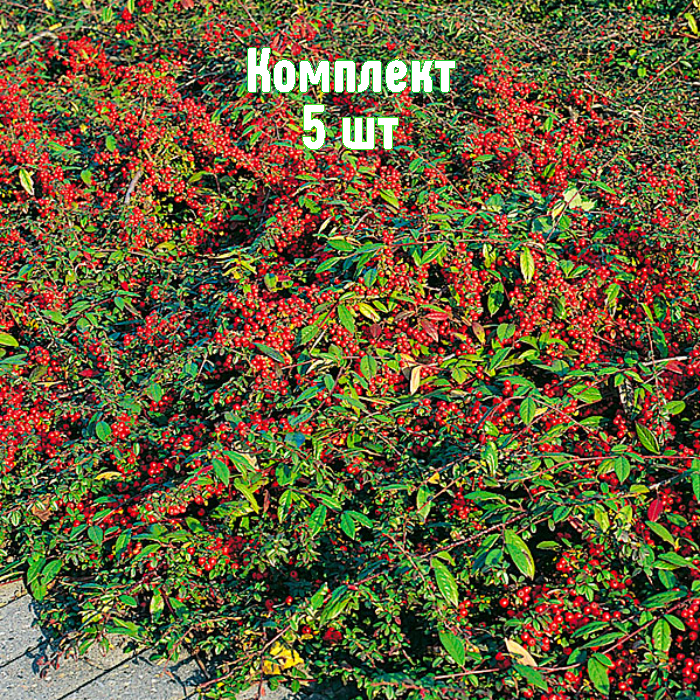- Пять хорошо развитых саженцев кизильника стелющегося высотой 50–60 см, каждый с маркировкой.