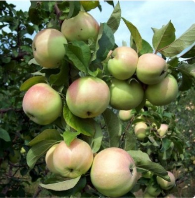 - Плоды 160–250 г, овальные, с плотной кожицей зеленовато‑жёлтого цвета и розовым румянцем; мякоть хрустящая, мелкозернистая, освежающего вкуса.